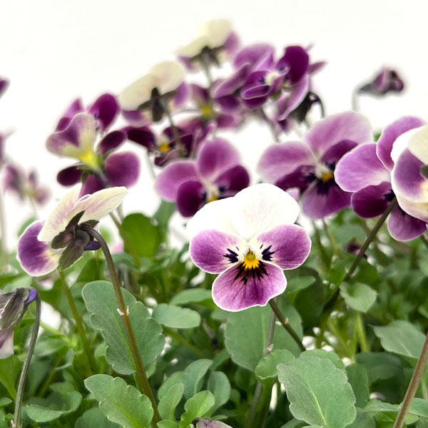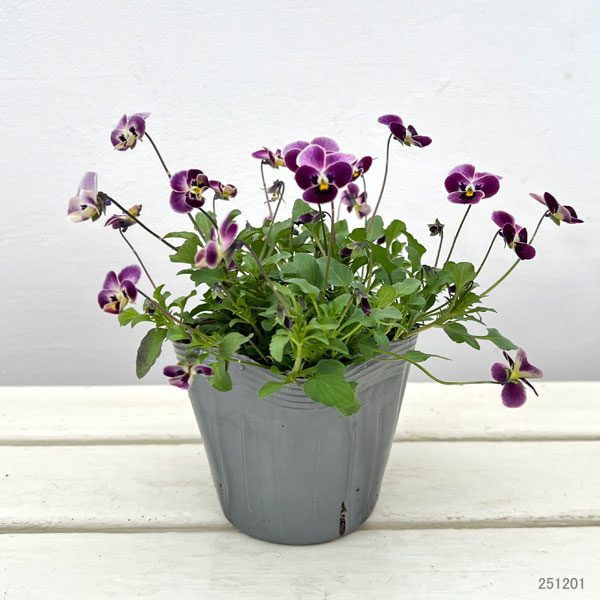 ★入荷から日数が経ったためセール価格となりました。商品の状態は画像と異なる場合があります。★高知県の育種家、見元一夫氏のビオラ。やわらかな色あいと可憐な花で大人気です。毎年新しい品種も誕生し、さらに魅力的に。可憐な見元ビオラの世界をお楽しみください。淡い紫色のつぶらな瞳がかわいい小輪丸弁のビオラ。花弁の赤紫に白いエッジが出るのも特徴。株はやや横に広がるように生長し、多花性で冬も休まず咲き続けます。花色は色幅があります。個体により気温が低くなってくると色が薄くなってくるものがあります。