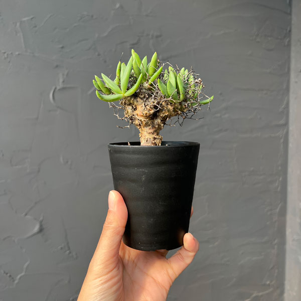★現品販売★チレコドンは、冬型コーデックスの代名詞ともいえる人気品種。古木感漂う幹が魅力的な塊根植物です。万物想はチレコドンの代表的な品種。小さな花を咲かせた後、花柄の枯れた部分がそのまま残り、年数を重ねるごとに枝数も増えて大きく複雑な形になるところが最大の特徴で魅力です。5度以上を保っての管理が好ましいですが、比較的耐寒性があり、寒風の当たらない屋根の下なら0度くらいまでは耐えられます。