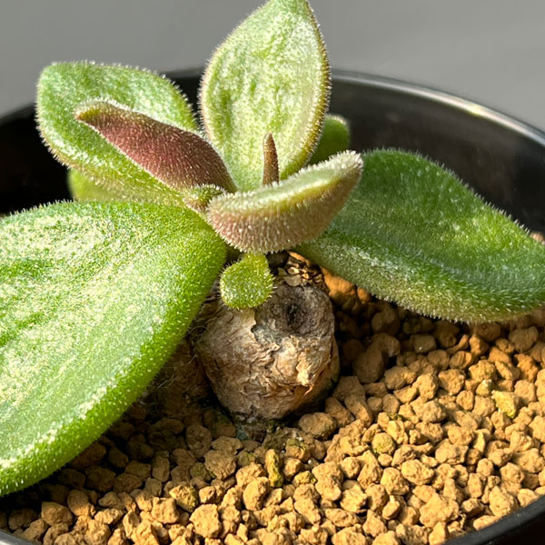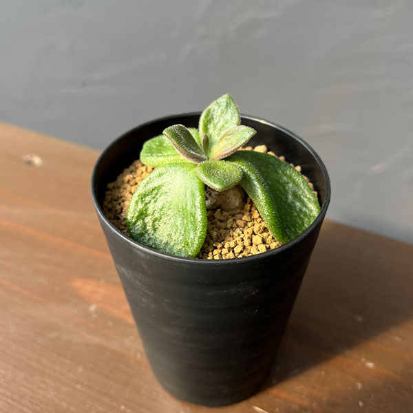 チレコドンエクティプスは、小型で独特な樹形を持ち、肉厚の葉と幹が太くコルク状の質感が特徴的です。夏には休眠期に入り、葉を落とすことが多いです。チレコドンは南アフリカの乾燥地帯原産の塊根植物(コーデックス)の仲間です。崖の岩の陰や割れ目に張り付くように自生します。茎が太くなり、ユニークな形が楽しめます。