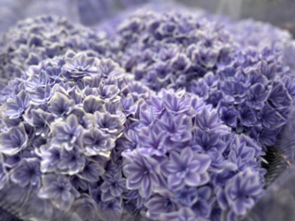 八重手まりに広がる、白覆輪のグラデーション 紫陽花