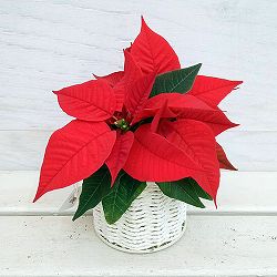 鮮やかな色がきれいなポインセチア。冬の定番鉢花です。クリスマスシーズンのデコレーションには欠かせません。ホウ葉の鮮やかな色は、上手に管理すれば春まで楽しめます。